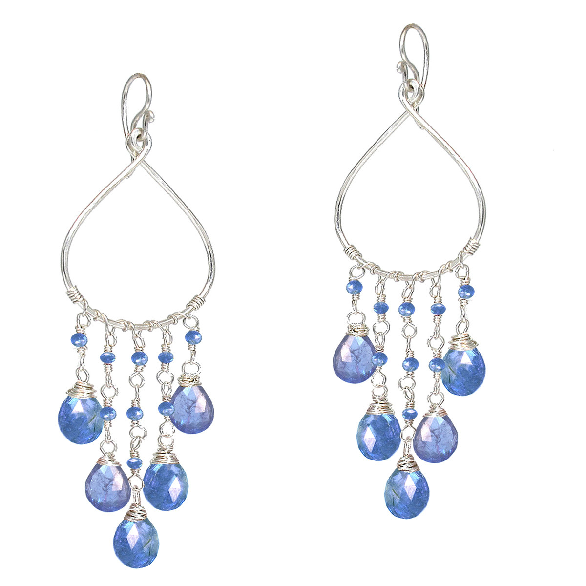 A burst of sky, ocean and gorgeous blue tones will add a soothing compliment to any outfit with these blue chandelier earrings! These royal blue tanzanite teardrop earrings are sumptuous, and they will leave you feeling beautiful! While very elegant for some formal looks, these enticing dangles will compliment dressy outfits and add a more formal look to many casual looks as well. Play them with a silk evening gown, with a draping silk blouse, or even wear them with jeans, boots and a cashmere sweater. They are so versatile, that they can be combined with many different looks and will add color and design to most any outfit in your wardrobe! However you wear them, these blue chandelier earrings will surely get YOU noticed!