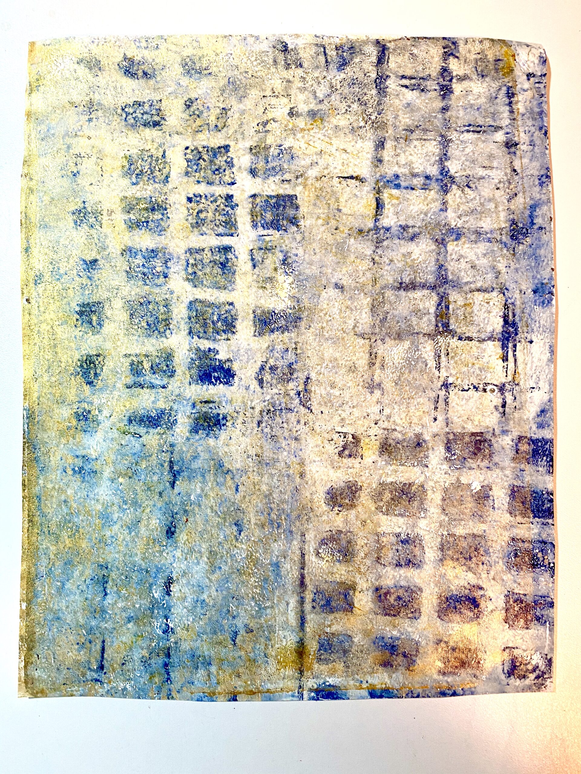 Original Monoprint Blue Gold Geo #1 Series